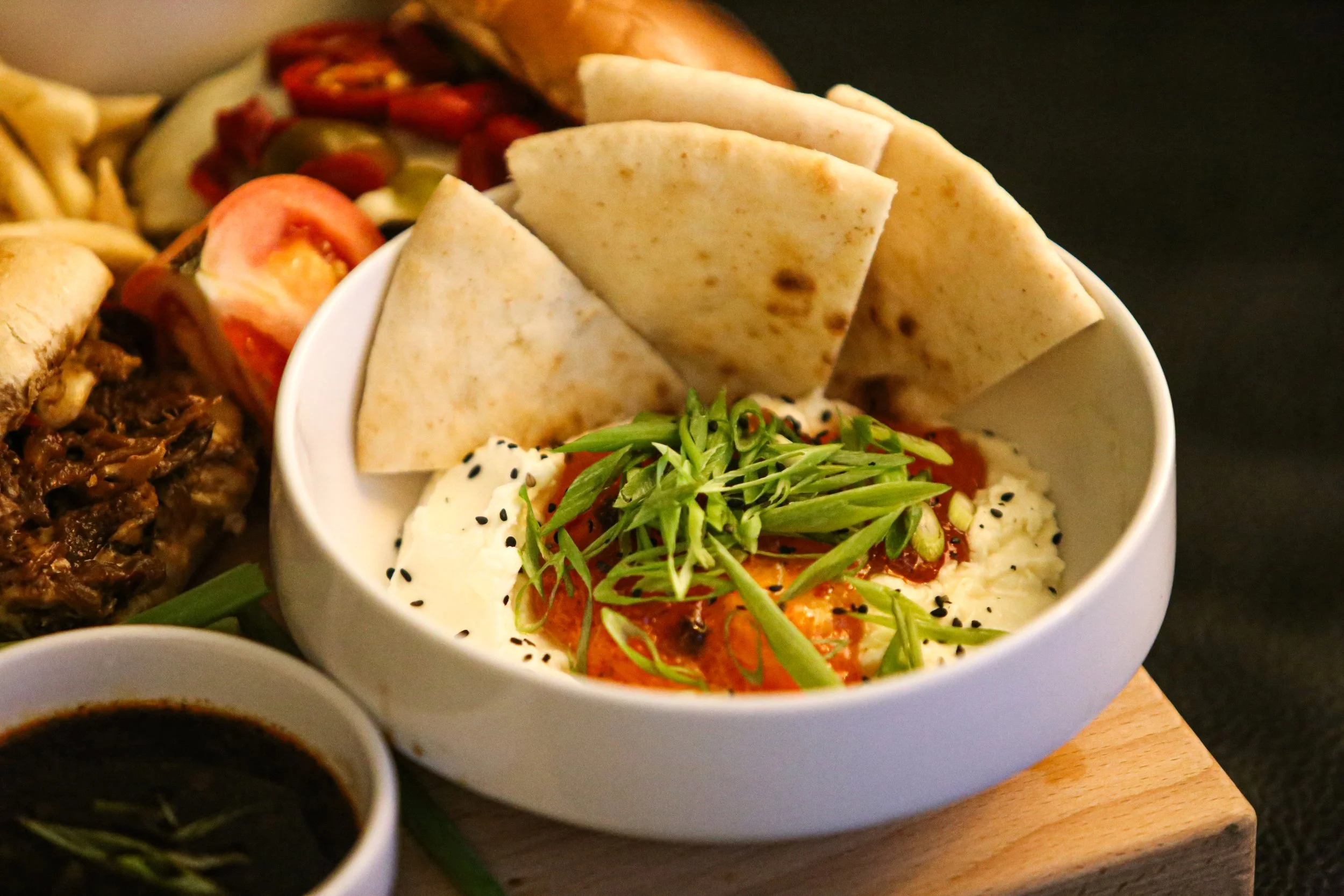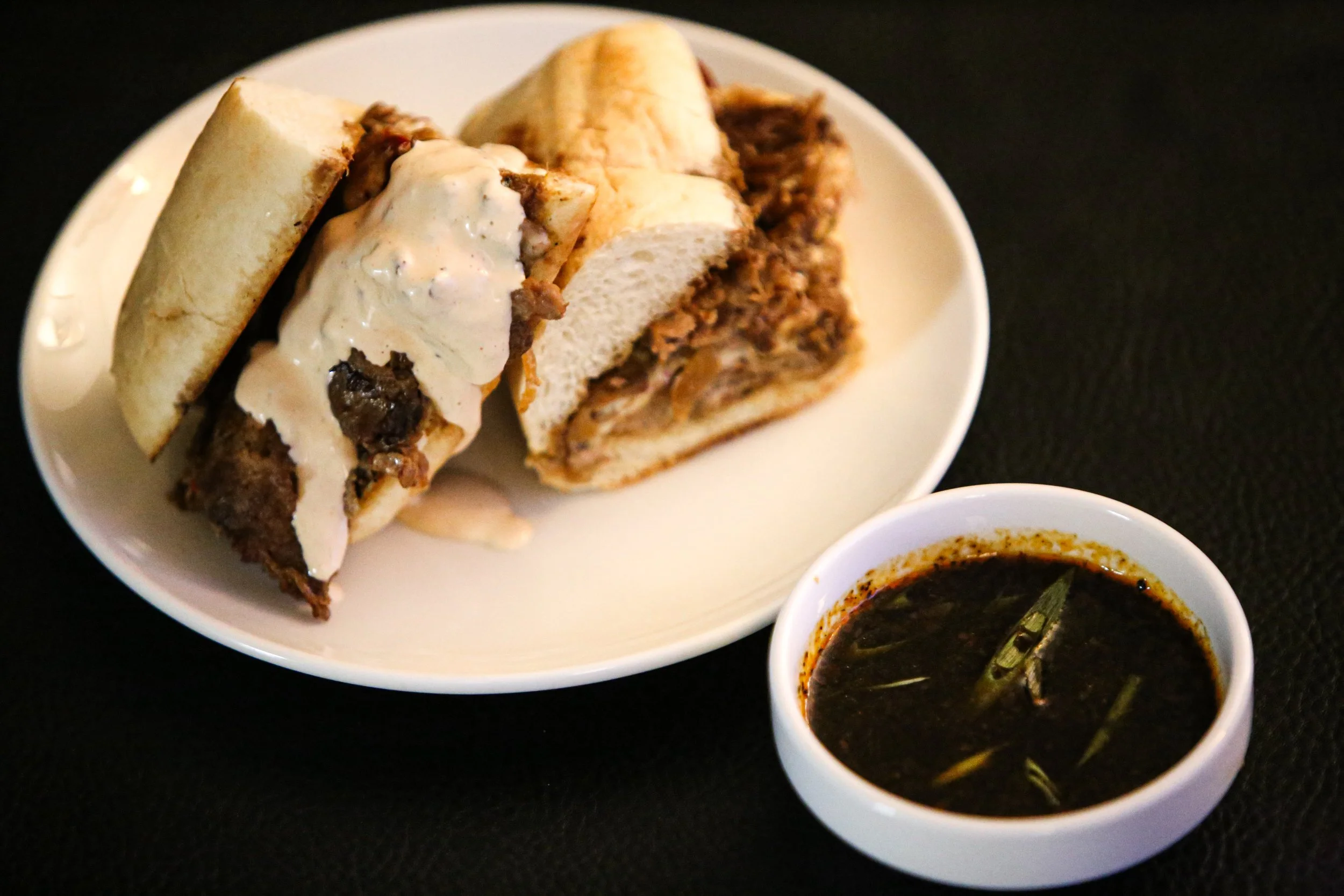 whipped feta, shaved rib eye, white cheddar, caramelized onions, cherry peppers, au jus