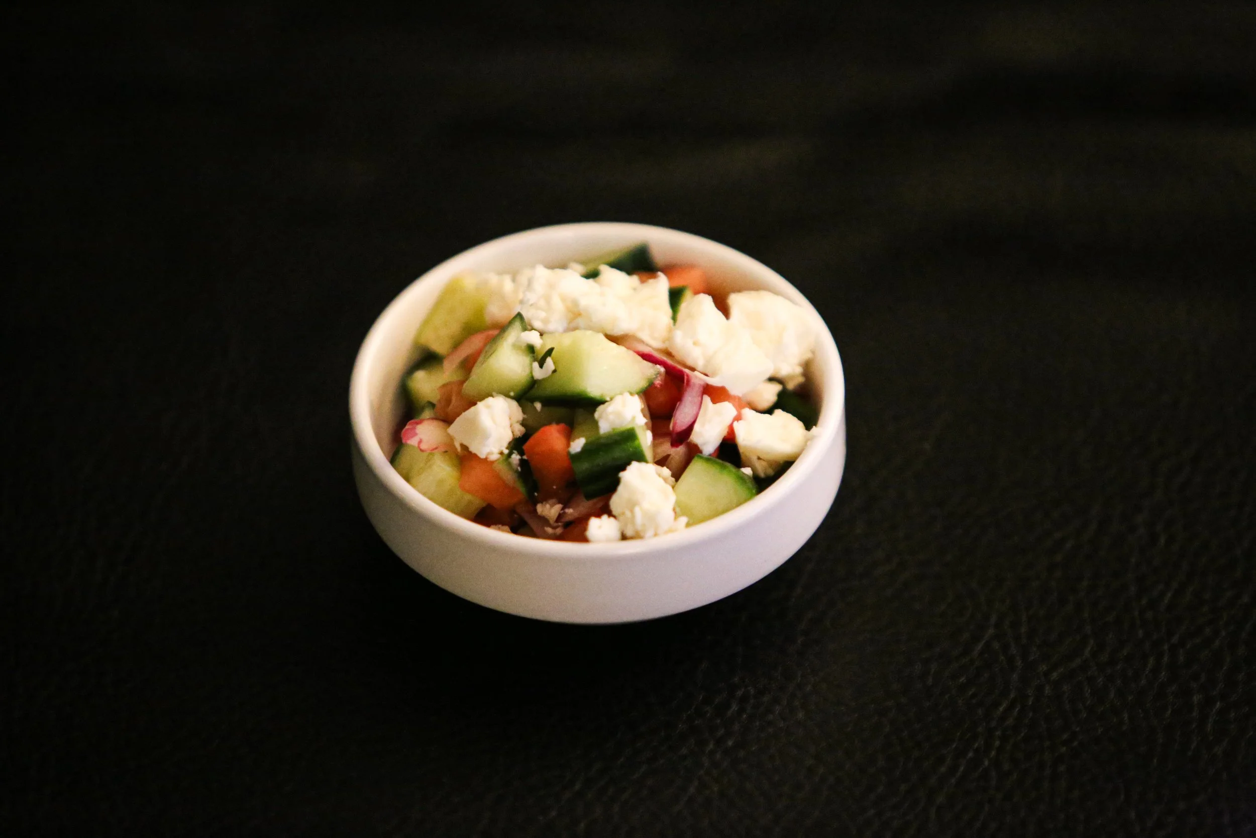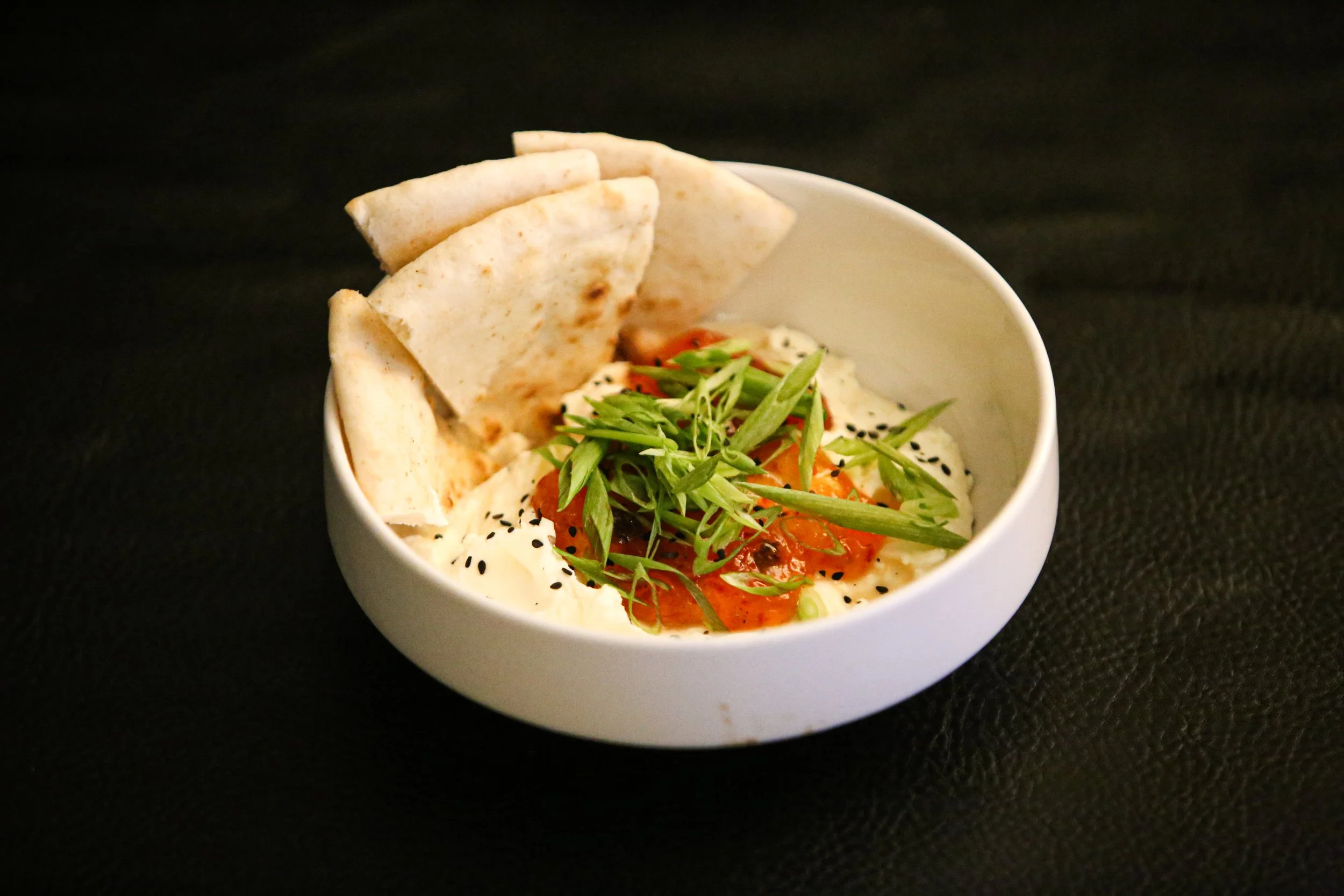 avocado, cucumber, whipped feta, pickled onions, everything but bagel seasoning